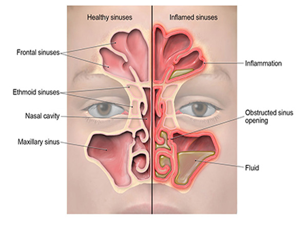 Sinuses are air-filled cavities within the skull bone. These hollow spaces in the skull are situated in cheek bones, forehead, behind the bridge of the nose, between the eyes, in the upper region of the nose and behind the eyes. All the sinuses have the same lining that is present in the nose. This lining produces mucus, which is drained out of the sinuses through an opening in the nose. When a person has cold or allergy, swelling in the nose and sinuses can cause the drainage to get blocked. This results in the mucus being trapped in the sinuses, leading to the growth of bacteria and viruses. The inflammation of these sinuses is referred to as Sinusitis Conditions such as allergies, nasal polyps, and tooth infections can also contribute to sinus pain and symptoms. Homeopathy can be of great help in the treatment of Sinusitis.